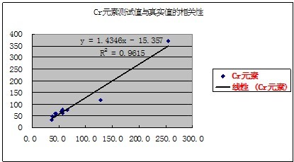 有關(guān)元素的測(cè)試值與真實(shí)值的相關(guān)性如下表示: