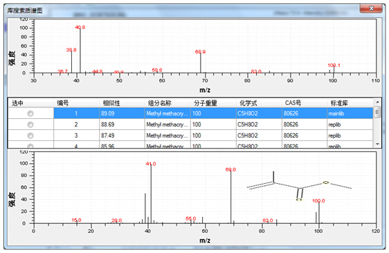 2.3  三重峰的質(zhì)譜圖(圖2.28.68.9 min)經(jīng)NIST2014庫確認(rèn)