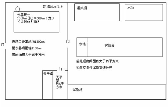 ICP-2000型ICP掃描光譜儀的外形尺寸為1510mm(長)×600mm(寬)×1180mm(高),重量為300kg ,發(fā)貨時四角裝有減震器,儀器運(yùn)到用戶后卸下減震器,換上螺絲桿,當(dāng)儀器選好位置后,將螺絲桿旋出使四角輪懸空,調(diào)節(jié)螺絲桿使儀器至水平,為保持儀器性能穩(wěn)定及便于維護(hù),ICP-2000 周圍必須留出供維護(hù)人員維護(hù)儀器所需的空間(安裝臺距后面墻面至少70cm)