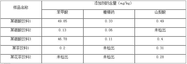 綜上所述,通過對各種汽水、飲料進行測試,本方法前處理簡單、方便快捷、靈敏度高、回收率高、精密度好,且試劑用量少,避免大量化學試劑的使用,減少環(huán)境污染。本方法用來測定食品中添加劑苯甲酸、山梨酸、糖精鈉的含量簡單、可靠。