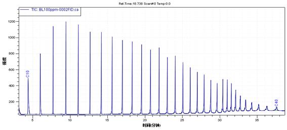 正癸烷到正四十烷(C10-C40)混標濃度ρ=31000mg/mL (各正構(gòu)烷烴質(zhì)量濃度均為1000 mg/L),溶劑為正己烷(國家標準物質(zhì)網(wǎng));