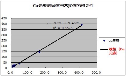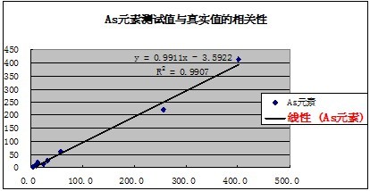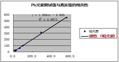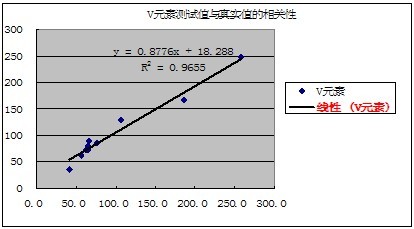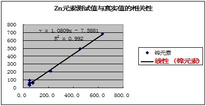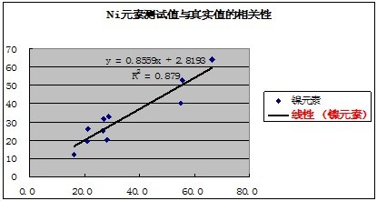 有關(guān)元素的測(cè)試值與真實(shí)值的相關(guān)性如下表示: